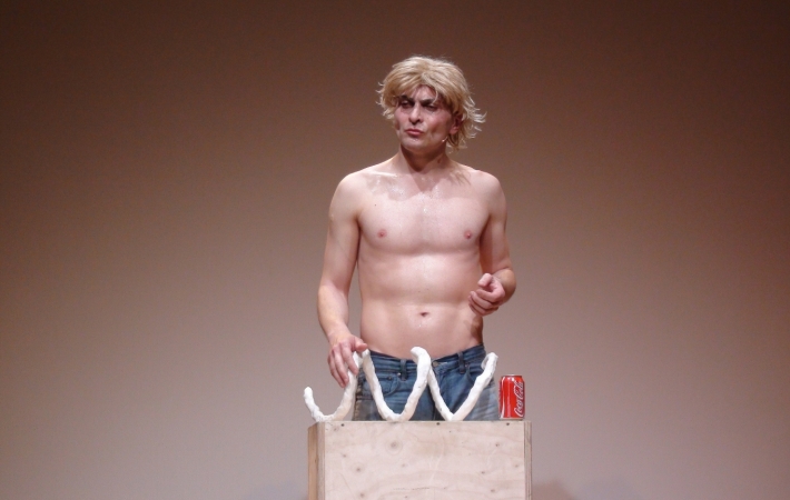 Французская труппа с необычным названием «Если б вы могли облизать мое сердце» («Si vous pouviez lécher mon cœur»*) во главе с 27-летним режиссером-неофитом Жюльеном Госселином покажет спектакль «Элементарные частицы» по роману Мишеля Уэльбека. В прошлом году постановка наделала немало шума на Авиньонском фестивале, ибо Госселин впервые рискнул перенести на сцену уэльбековскую модель человечества – «метафизическую мутацию». Самый спорный роман рубежа веков о брошенных матерью сводных братьях Мишеле и Брюно, в которых, как в зеркале, отразилась деградация некогда великой европейской цивилизации, режиссер представил как футуристический квест по галлюцинаторным образам, «бесполым и бессмертным», сопроводив его живой музыкой, кинокадрами и телевизионными вставками. Определить жанр действа довольно затруднительно: нечто среднее между театральным спектаклем, кинофильмом и рок-концертом.