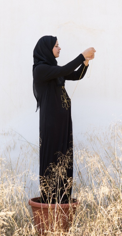 Abd Alkadr lives in the predominantly Bedouin city of Rahat in the Negev desert. Following her marriage she arranged potted cacti around her new home, forming a fence, an act which may be construed as mapping her territory, or also as a sign of the perseverance needed in forming her identity within this new family. During time, she awarded those nurtured domesticated cacti, as gifts to neighbors and relatives whit the hope for long lasting relationships, due to the cacti's longevity.