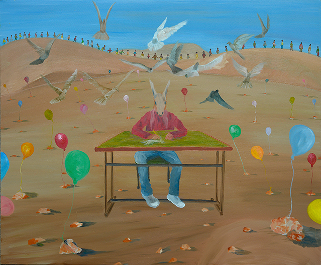 Shimon Pinto exhibits paintings from recent years rife with stratified personal symbolism. He fuses philosophical and theological questions pertaining to identity, giving form and symbolization to real life scenes, associations, childhood memories, and reflections about the artist's place in the world as a human being and as a creator.