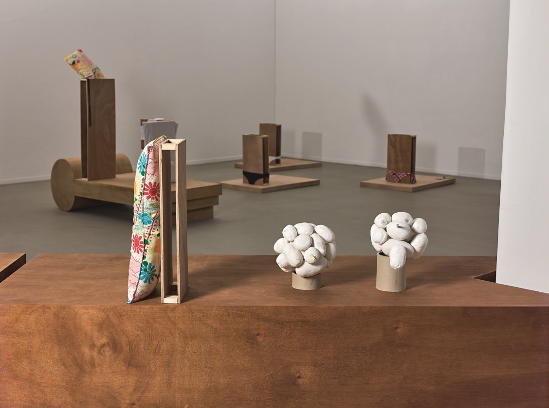 In the early 2000s, a sense of evacuation, compression and transparency is evident in Golombek's sculptures, in contrast to the expansion and opaqueness characteristic of his earlier sculptures. In those years, Golombek made aquarium works: plaster teeth, dried flowers, burnt matches and pajamas were placed in glass cases, signifying the traumatic zone. Golombek then began merging cheap everyday objects—egg cartons, pencils, slippers, combs and plastic foods in plywood frames, in works that turn a poetic gaze towards society’s weakened marginal populations.Questions of sexuality and eroticism are also evident in Golombek's work, through images referring to acts of peeping (through key holes), touch, penetration, friction or pleasure. In his new works presented here, issues of middle age, old age and the deteriorating body's desire are manifested through sculptural forms reminiscent of sarcophagi, tombstones wrapped in used clothes and structures of spread legs. Opposing motions of cheerfulness and despondency, arousal and limpness, fullness and emptiness establish the tragi-comic space in which the sculptures exist. These sculptures are interpreted with reference to the limp, erotic, grotesque body, and handle processes of depletion and loss in a tragi-comic way.