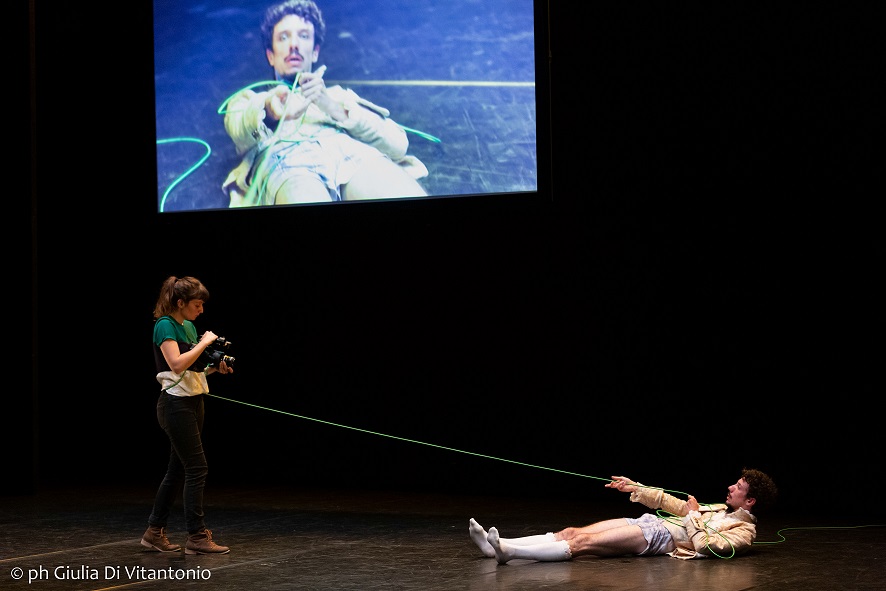 In their first collaboration ever Cindy Sechet and Andrea Costanzo Martini set out to explore the complex relationship between a performer and his own image. Intertwining live film and dance they open the door to a kingdom ruled by the Gaze in which the existence of the Other becomes undeniable.