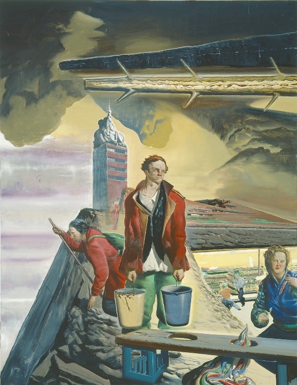 Синдром разрушающейся Вавилонской башни становится конвенцией современного искусства – наряду с исчезающим мировым порядком и гегемонией Запада. Если же отвлечься от этой словесной премудрости и попросту понять, что на выставке дают, то отвечу – дают тревогу. Мастерски переданное ощущение тревоги – переданное сквозь живопись, графику, фотографию и видеоарт. Тревога, стекающая со скульптур (даже горизонтальных) и сочащаяся из инсталляций (отчасти навеянных фильмами «Ад в поднебесье» 1974 года и «Бегущий по лезвию» 1988-го). Тревога не в завтрашнем дне – завтра уже не наступит после разрушения Вавилона, тревога и сомнения – в дне сегодняшнем. Экспонаты здесь не отражают тему, не демонстрируют замысел, а бьют беспощадно по нервам, умоляя проснуться и оглядеться. Бьет всё – от живописных индустриальных полотен вплоть до стеклянной башни, хрупкой и раскаленной. Нить накаливания пронзает пространство зала, как красный луч опасности.