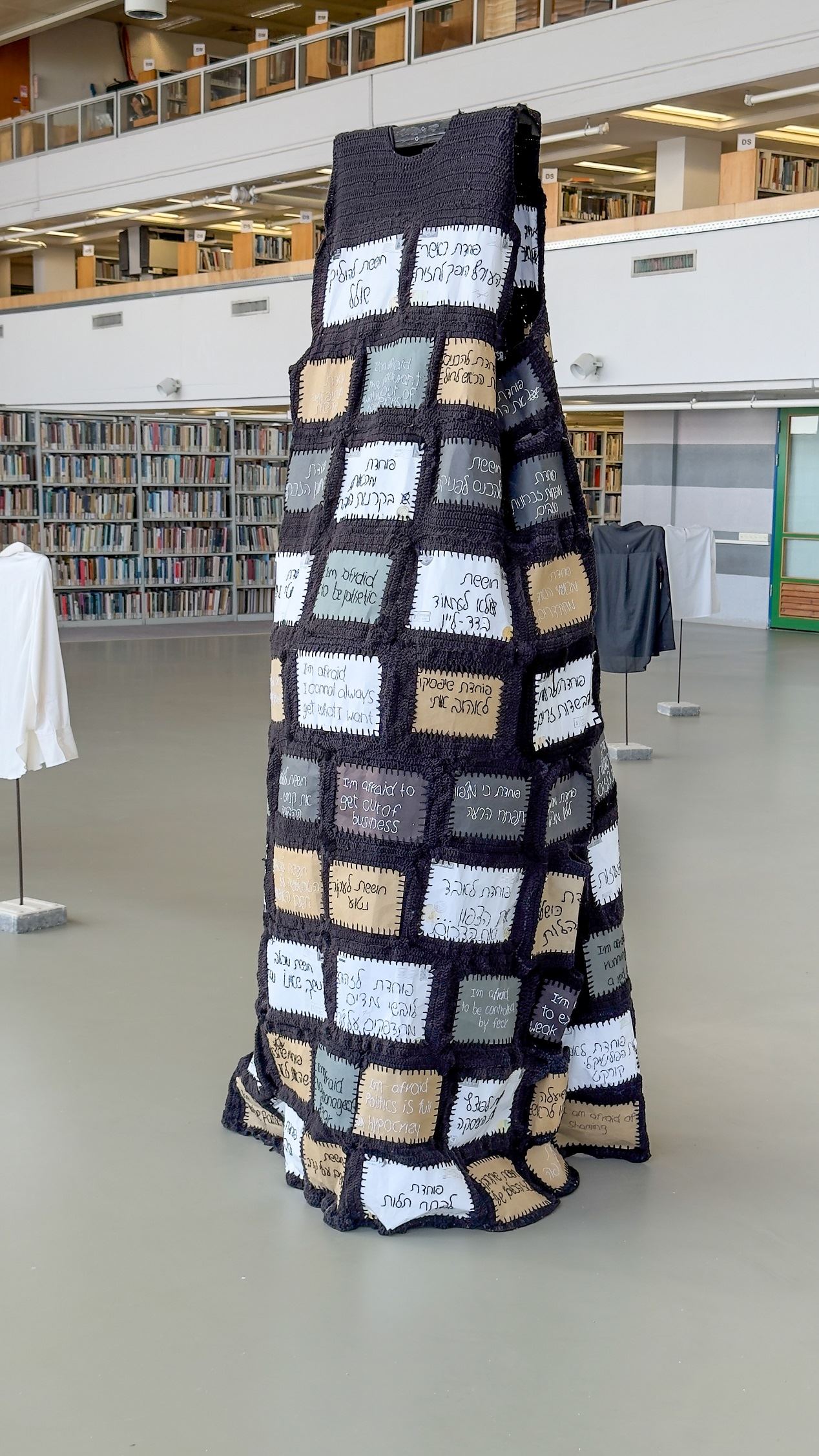 Batia Shani’s exhibition presents the visiting public with a selection from among the numerous and heterogeneous bodies of work she has created over recent decades – all of which were manually crafted through processes of sewing and embroidery. Shani draws from her own personal biography and from various sources of inspiration that influence the subjects and contents of her embroidery works – images, signs, words, and shapes. Her texts are borrowed from various sources, which highlight deep emotional and unconscious themes.