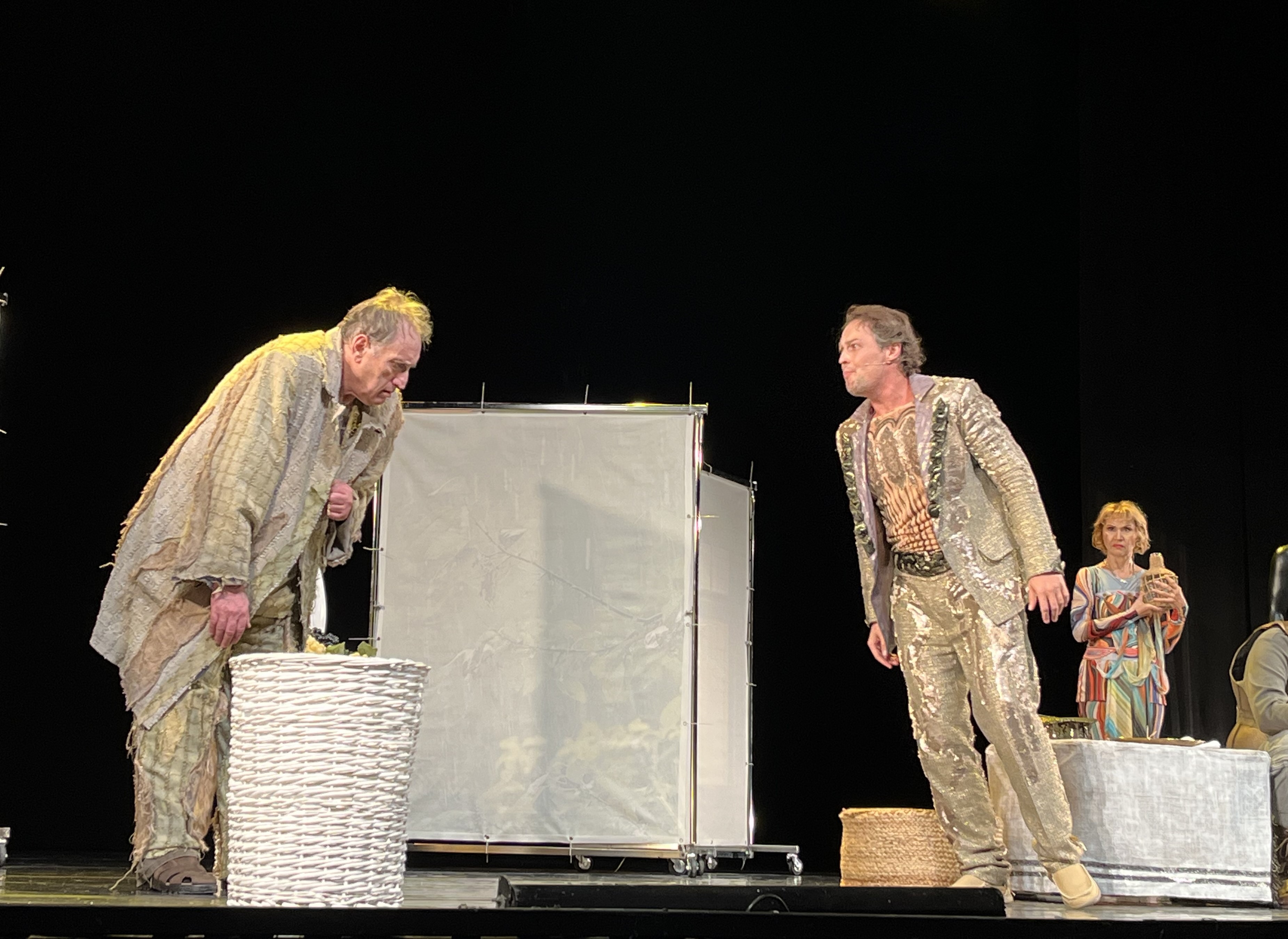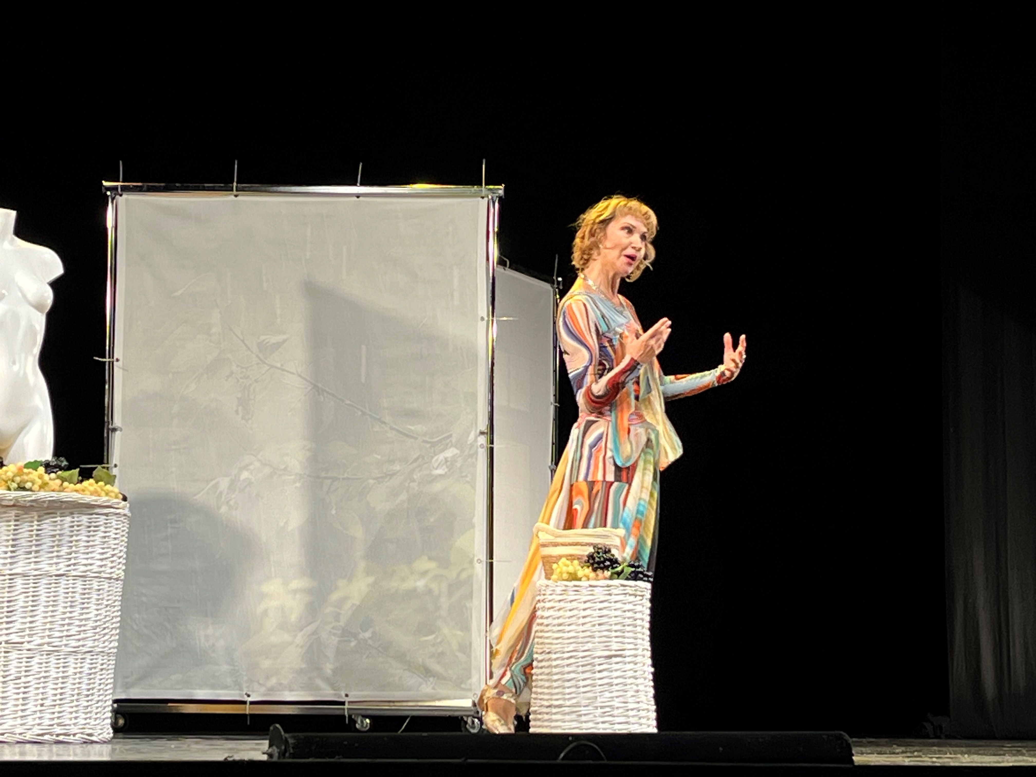 Язык в этом спектакле был не просто языком, а настоящим лакомством! Эзоп, как знатный повар, подал его дважды – один раз как деликатес, другой – как отраву. Я, как истинный ценитель, оценил оба блюда. Словно после хорошего обеда, я размышлял: ведь язык может как возвысить, так и унизить. С его помощью можно говорить о любви, а можно и о предательстве – как хитрая лисица, что лукаво смотрит на виноград, которого здесь было в избытке (от лисицы, правда, присутствовала только шкурка).