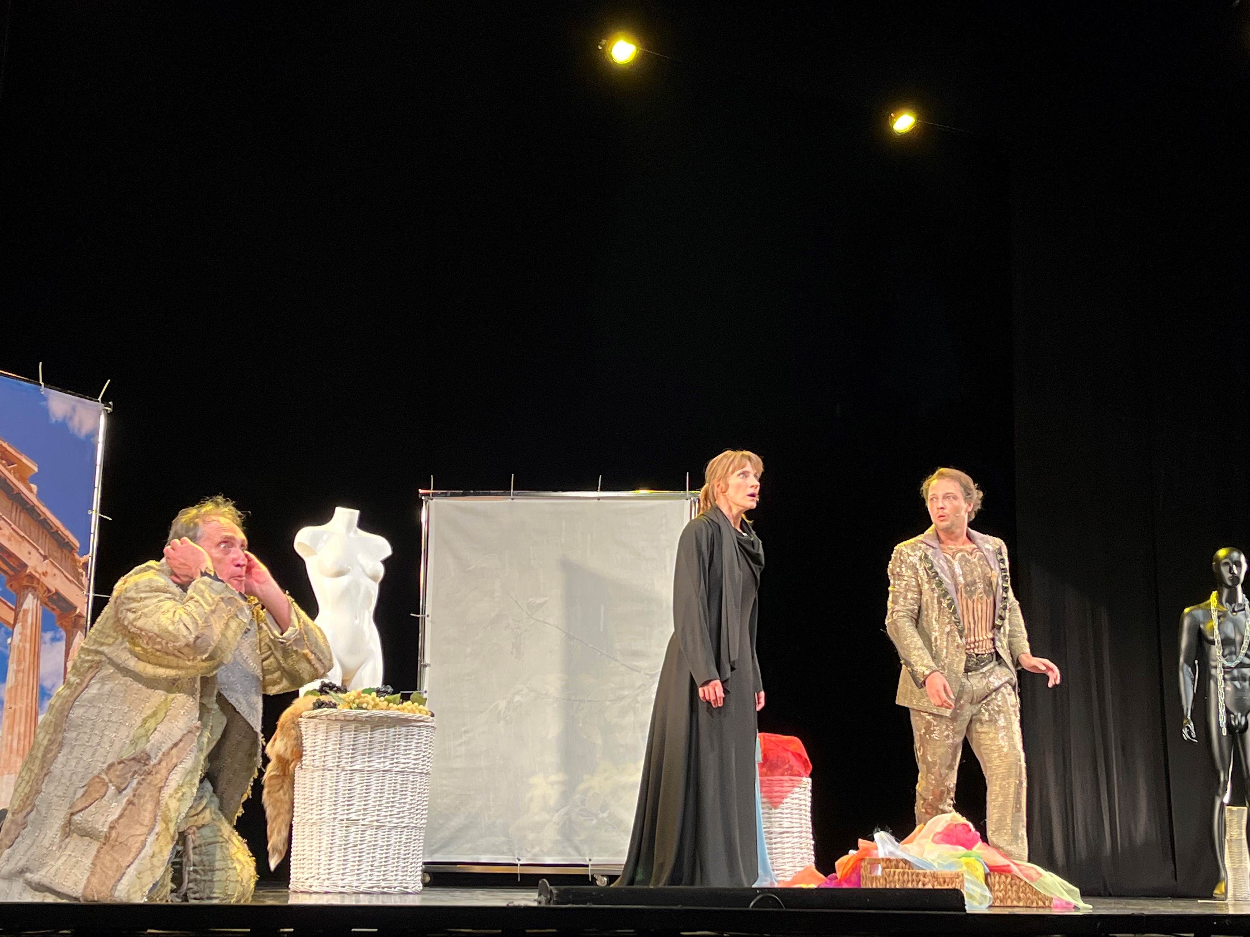 Тут, кстати, были и женщины – жена Ксанфа Клея, что напомнила мне своей статью Элану, ублажавшую самих богов Олимпа; та обладала целым состоянием в виде семи больших пушистых кошек. Вера Оренова – Клея (еще она похожа на мою прекрасную хозяйку, которая пытается мне угодить, но у нее не всегда получается) и игравшая рабыню Светлана Демидова (бесподобная, как всегда – люблю эту актрису до самого мурра) добавляли происходящему не только блеска, но и теплоты, как мурлыканье в дождливый день. Они будто нежно играли с клубком жизни, делая его всё более сложным и прекрасным. И был Николай Туберовский – ох, был он как притаившаяся кошка на охоте. Его реплики казались невинными, но каждый его шаг – словно пружина, готовая вот-вот разжаться. В самый неожиданный момент он выстреливал акцентами, и сцена вздрагивала, как мышь, почувствовавшая приближение хищника.