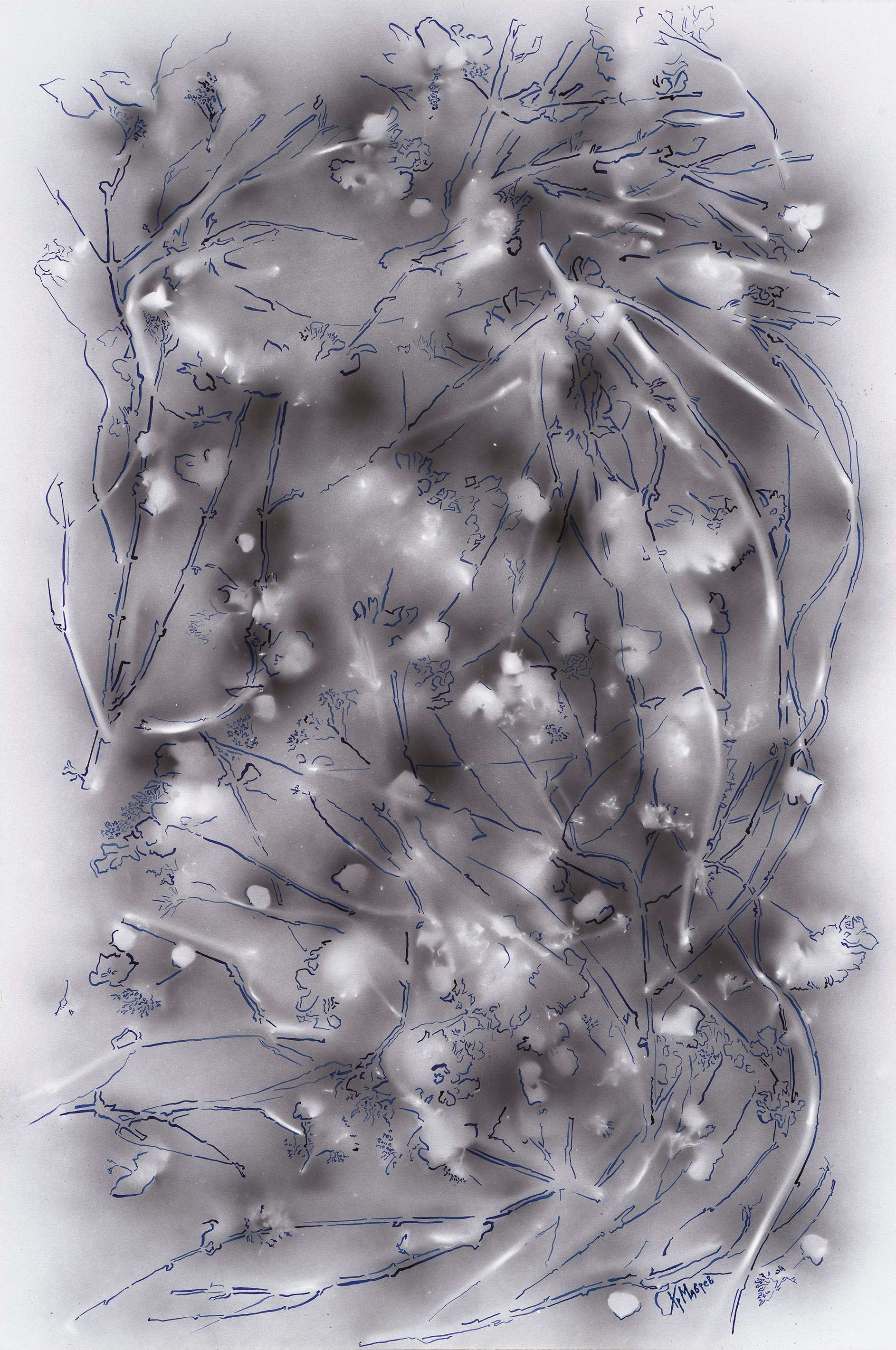 Hristo Mavrev, Being and Nothingness (Hydrangea), 2021. Spray paint and ink on cardboard