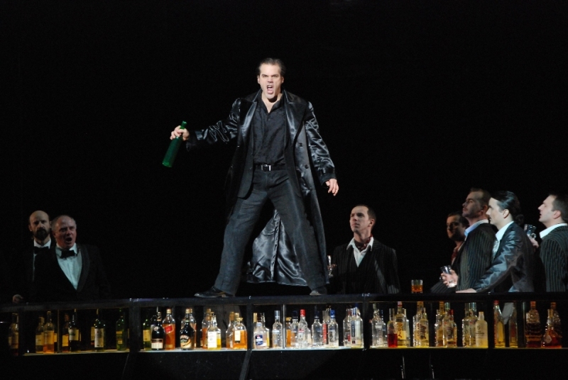 Добавим, что в этом спектакле Гофман, как и его реальный прототип, мечется в вечном поиске Абсолюта и незамутненного объекта желания – который на поверку, увы, оказывается мутным. На смену волшебству опьянения, сетовал автор новелл, всегда приходит тяжелое похмелье. Так что оперному Гофману остается лишь топить былое и думы в алкоголе, уподобляясь чудаку Клейнзаку из Эйзенаха – «флик-флак, фрик-фрак…»