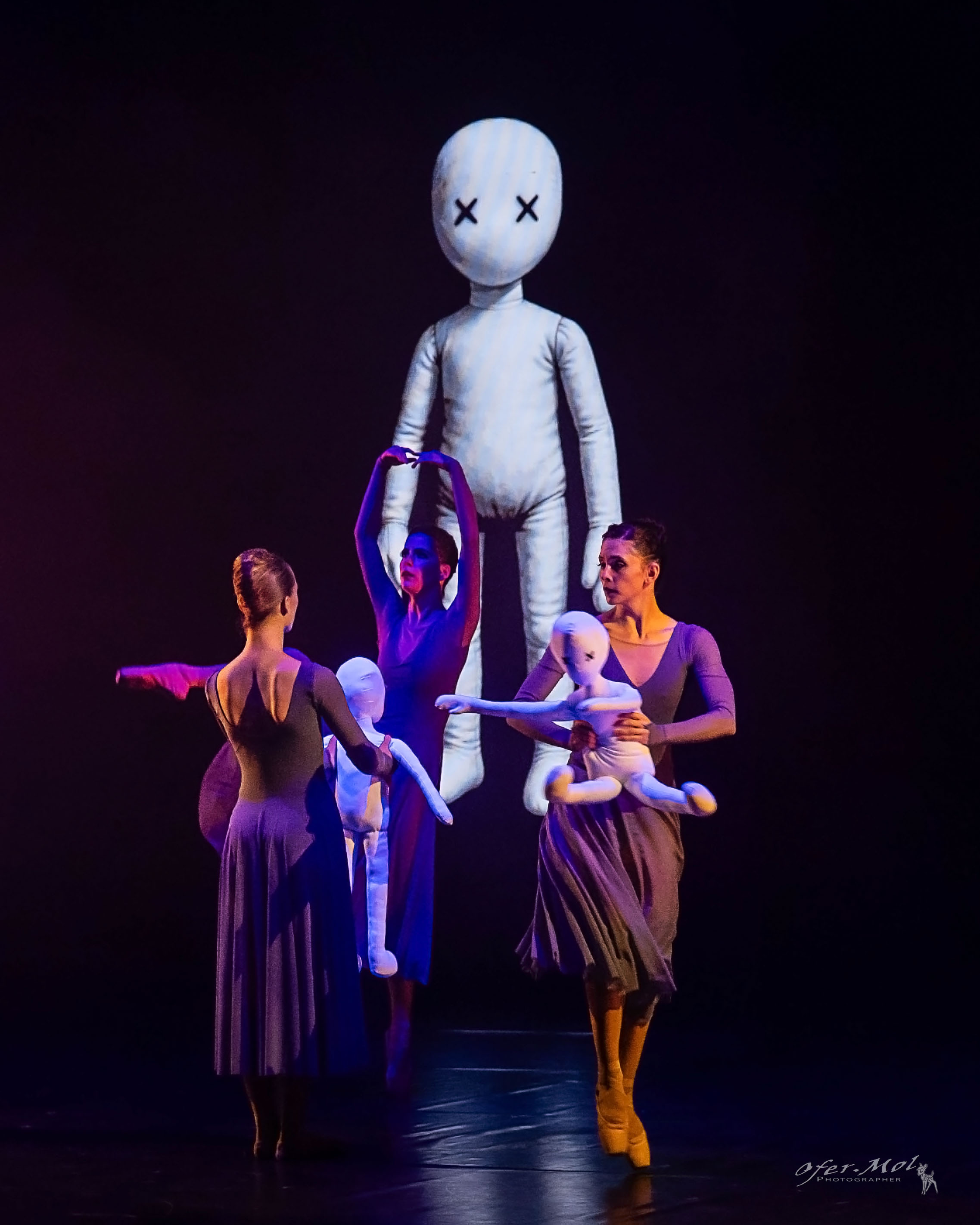 The story begins in Jerusalem, to the sound of Mahler’s First Symphony. Children clutch white rag dolls with little stitched crosses for eyes, discussing their modest destinies. They circle, collide, whisper; each doll is a small philosophical riddle. Or perhaps each is a letter waiting to form a word. Then, one girl’s (Noa Levy) doll disappears. She runs in search of it, tracing circles and spirals on the stage. Her dance lines—loops, falls, sudden stops—are almost mathematically precise, yet leave space for accident, like in letters where spelling mistakes turn into part of the meaning.