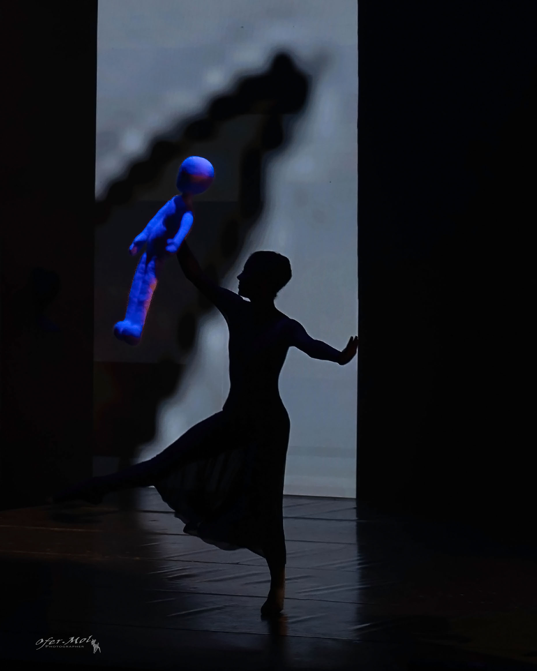 The Jerusalem Ballet unfolded a story that could have been an unwritten letter from Franz Kafka’s desk. It might also have been one of his manuscripts—rescued by Max Brod—now reappearing in the interpretation of Nadya Timofeyeva and Martin Schonberg as a living, dancing character. The manuscript itself moves, converses with other dancers, and engages in a subtle dialogue with the video art, which is intricately woven into the choreography: shadows and projections leap beyond the edges of the screen, becoming part of the living fabric of the performance—not to mention the dolls.