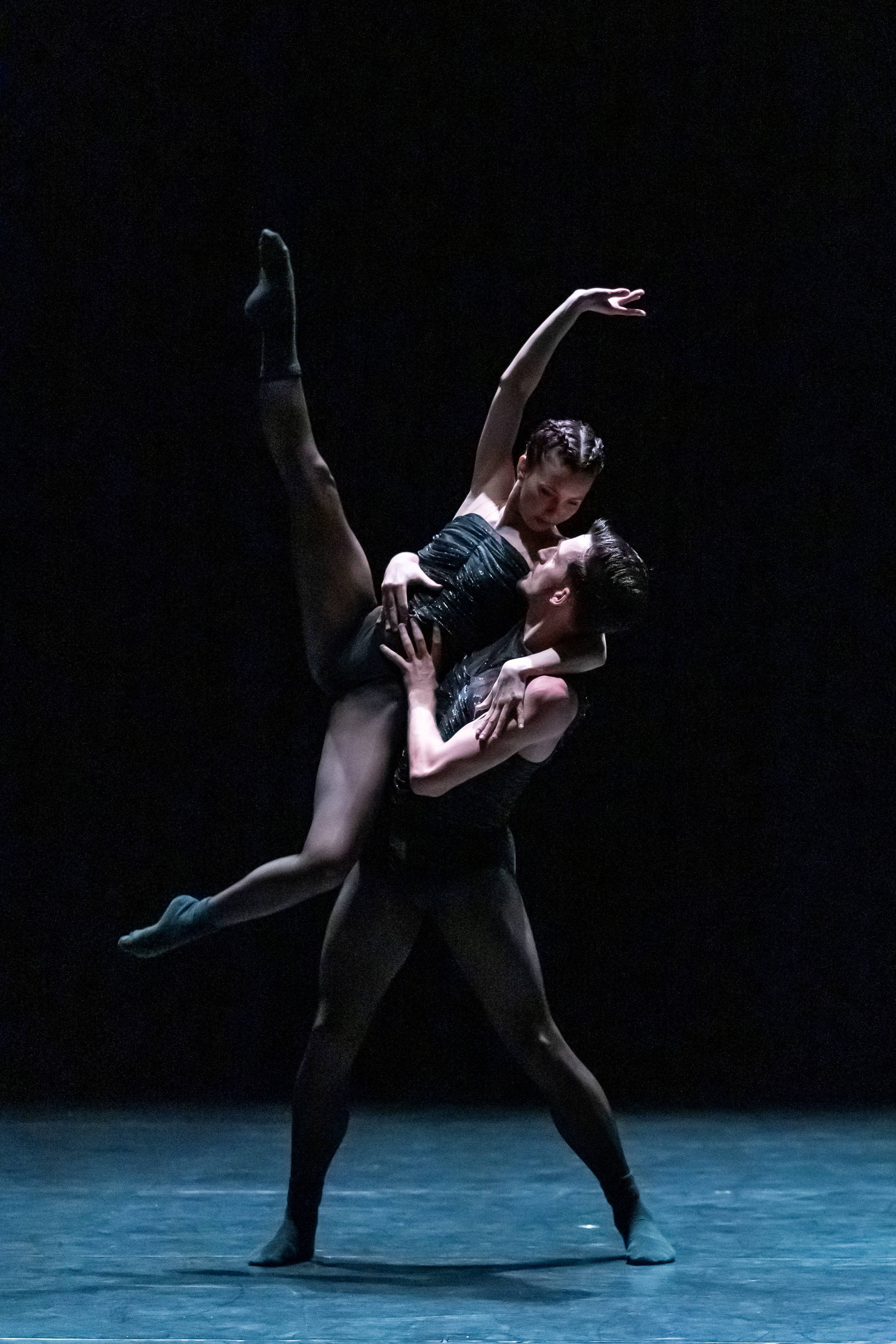 Пластические фигуры складывались в прихотливый орнамент, 11 великолепных танцовщиков извивались ужами и змеями, сплетались в многорукие и многоногие фигуры, превращались в неотмирных существ, тех самых метаморфов, что, согласно магической мифологии, способны произвольно изменять структуру своего тела. А также, повинуясь той же мифологии, копировать любое живое существо одного с ним веса, трансформировать части своего тела во что угодно, к примеру, превратить руки в щупальца, протечь тонким слоем мимо противника etc. Что и говорить, фантазеру Годани ни в коем случае нельзя отказать в оригинальности. Следуя за музыкой, хореограф наделил танцующих движениями, не побоюсь этого слова, хроматическими, острыми, с резкими подвывающими glissandi и колючими пиццикато, которые к инфернальному финалу остались единственным приемом игры. По телам то и дело пробегал ток, и это было очень впечатляюще. Сложная физически хореография заставляла дивиться непредсказуемой логике сочетания па и невероятной телесной координации танцовщиков, не ведающих, казалось, никаких пластических трудностей. Дуэты и соло, заботливо уложенные на электронную подушку, были как-то особенно хороши, ибо партнерство у Годани не статично, не подчинено традиционной иерархии «мужчина–женщина»: партнеры взаимозависимы, обмениваются весом, создавая динамику, в которой внимание зрителя удерживается не на фигуре, а на взаимодействии. Показывая через смену прелюбопытнейших комбинаций изменчивость человеческих отношений, Годани погружал зрителя в атмосферу наваждения и наслаждения, позволяя ощутить, как сказал бы Ролан Барт, всю стереофонию потаенной плоти. При этом то и дело проскальзывали и просвечивали движения из арсенала классического балета – пусть даже Годани надерзил классикам вдоль и поперек.