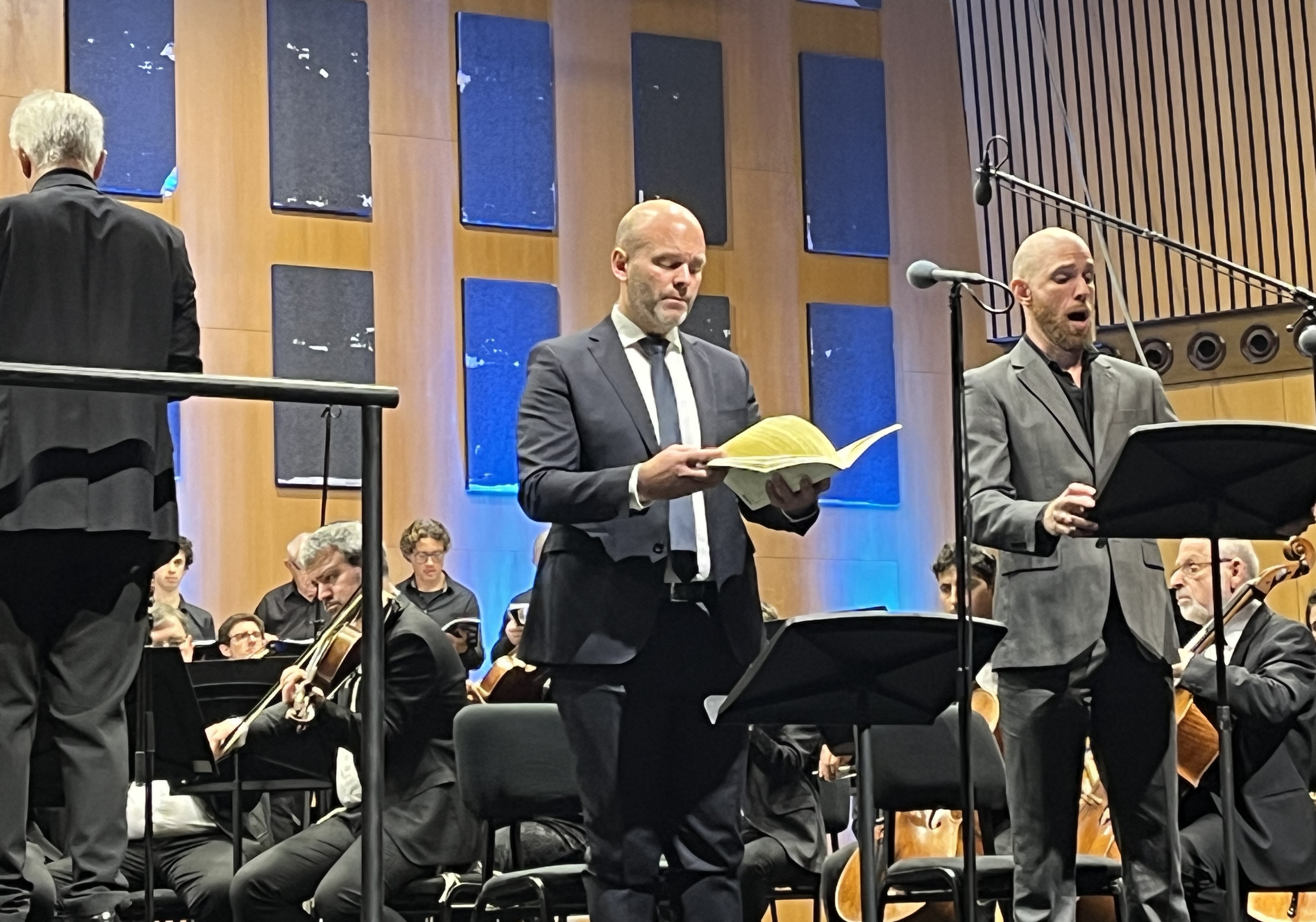 Иерусалимский симфонический оркестр находится в великолепной форме – это видно по умному и живому восприятию музыки. Столь же безупречен хор, особенно впечатлило, как он вознес Илию на небеса в огненной колеснице. Бас Одеда Райха (вчера он был сильно простужен, но как все-таки пел!) – словно каменная арка, удерживающая небо. Как последовательно раскрывает он каждую грань характера Илии, как противостоит приверженцам бога Ваала, как он властен поначалу, сколько в нем достоинства, и смирения, и сострадания; а вот он уже пророк-мститель («Не огню ли слово Его подобно?»). Изумительное, четко артикулированное пение, да еще и полное отождествление с персонажем. Фразы Оливье Куаффе (коих в партитуре не так уж много) серебрились сомнением, но стояли на своем. Алла Василевицкая (Вдова, Отрок) – свет, прозрачный источник, каждая фраза будто строит храм из воздуха. Хотелось бы также упомянуть ее Отрока – вообразите, что один детский голосок становится противовесом мощному басу, хору и оркестру, тем паче ребенку уготована тут ключевая роль: он по велению Ильи должен высмотреть хоть малейший признак дождевой тучи. Шай Блох (Ангел / Царица Иезавель) – хранитель-утешитель и мстительная, властная особа, гнев и скорбь земли, меццо с мягким дыханием и внутренней округлостью. Первый же их с Аллой дуэт пленил безоговорочно. Как и диалоги Илии и Ахава; впору было даже поверить, что это диалог двух полюсов одной мятежной личности.