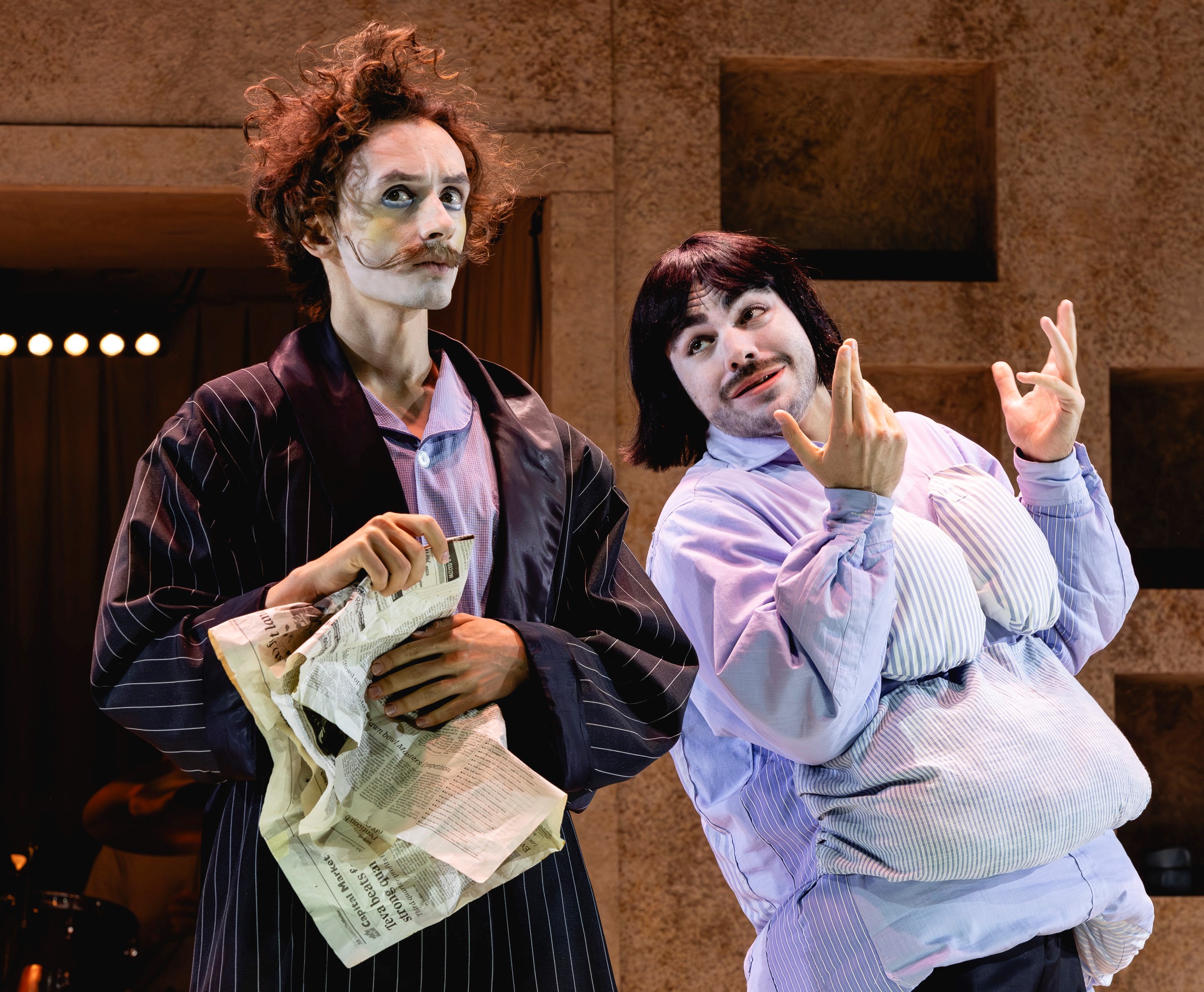Вся история про Крума – милого бедолагу, возвращенного жизнью из ничего обратно в куда-то, да к тому же с ненаписанным романом, выглядит так, будто Ханох Левин сам сидит где-то на галерке и похрюкивает от смеха. Потому что на сцене творится притчево-бытовая каша: людская фауна бегает, машет руками, любит, ревет, трясет накладными грудями, умирает – а у Левина без этого не бывает. Как не обходится он без внезапной печали посреди абсолютного комизма – чисто еврейского и чисто левиновского происхождения, без вечной нашей с вами vanitas comedy, где жизнь человечья – эвфемизм смерти.