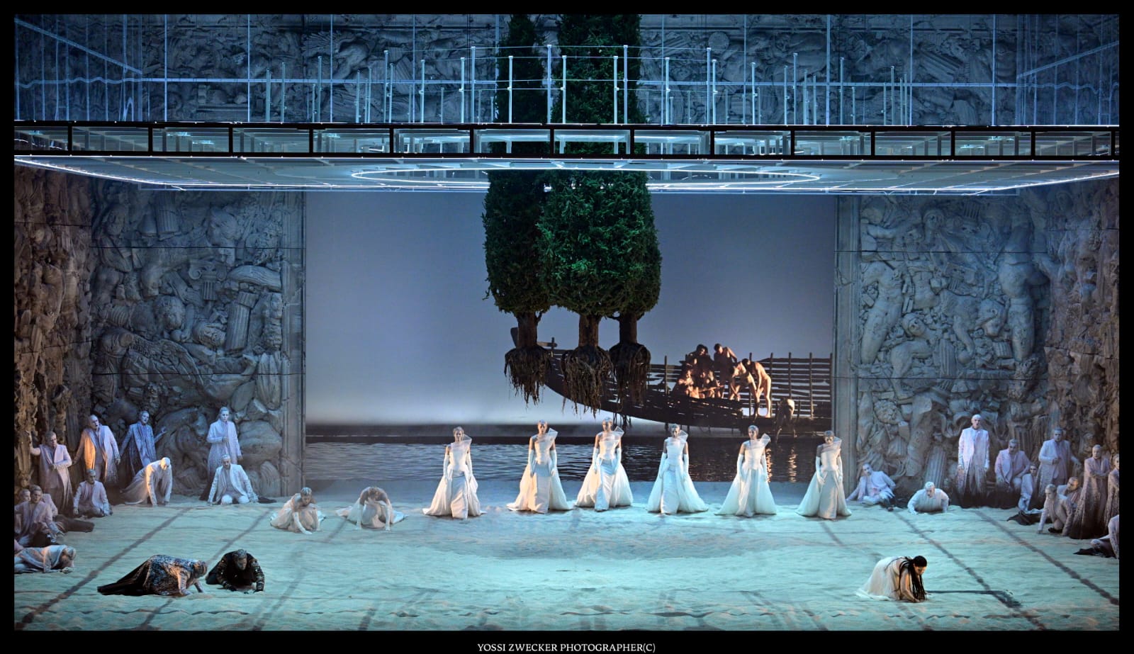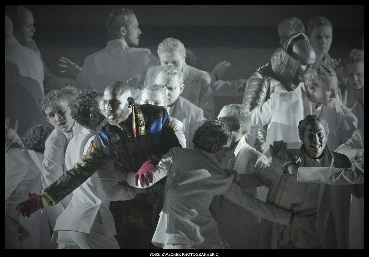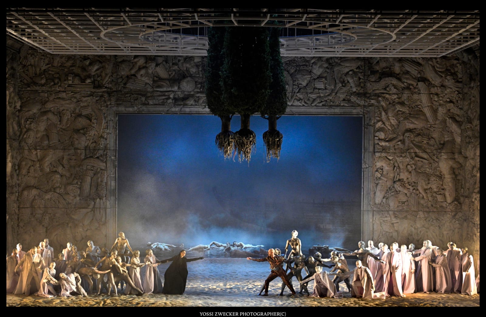Я всегда подозревала, что у итальянца-затейника Стефано Поды какая-то своя личная религия. Не вероучение, а способ смотреть на мир так, будто все мы – каменные истуканы, непрерывно пытающиеся стать живыми. Его «Дидона и Эней», как и виденный мною недавно в Бухаресте его «Эдип», только подтверждают это ощущение: ты выходишь из зала слегка окаменевшим. Сегодня, после премьеры «Дидоны и Энея» Пёрселла в Израильской опере, случилось именно такое состояние – но на сей раз от завороженности наблюдаемым действом.