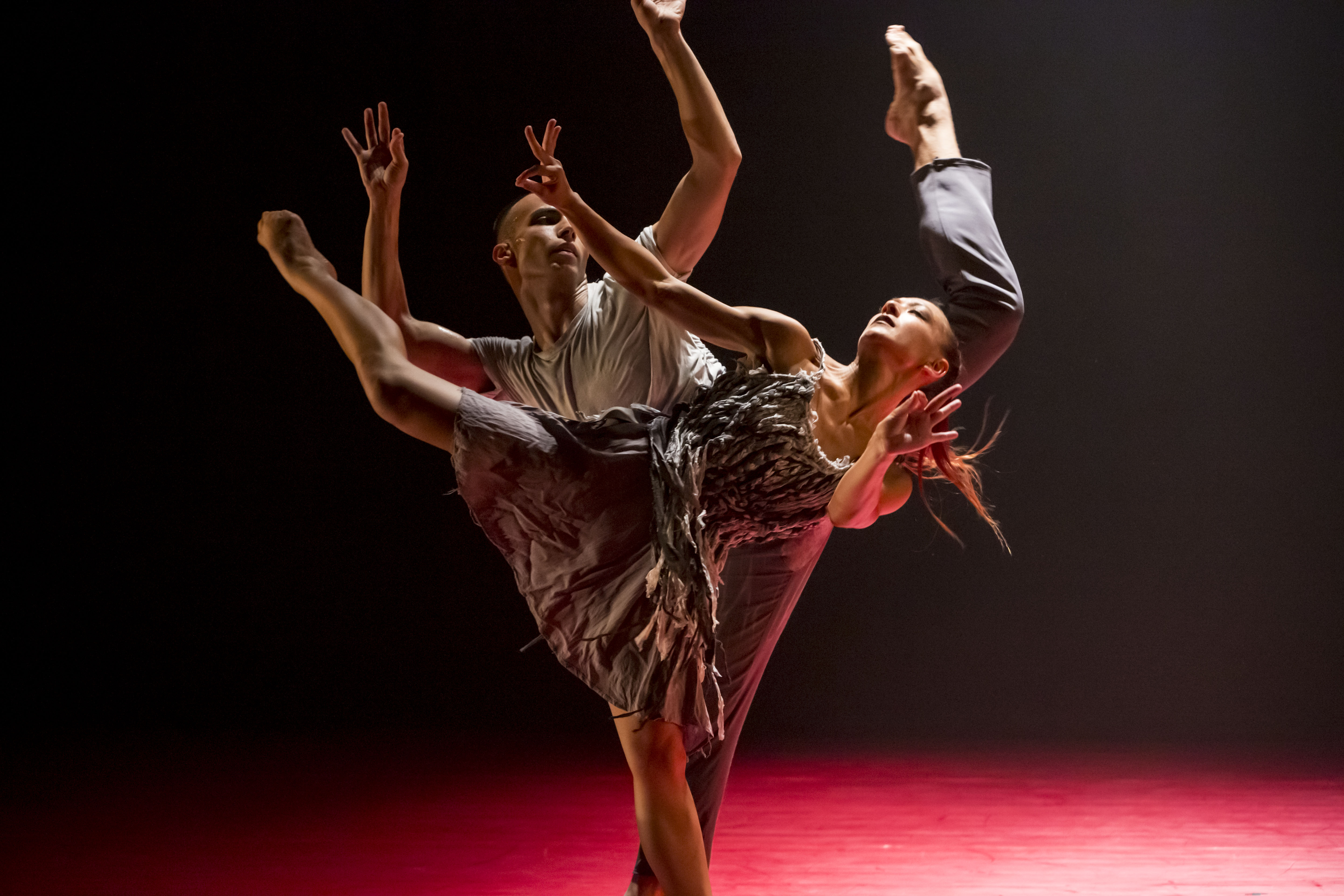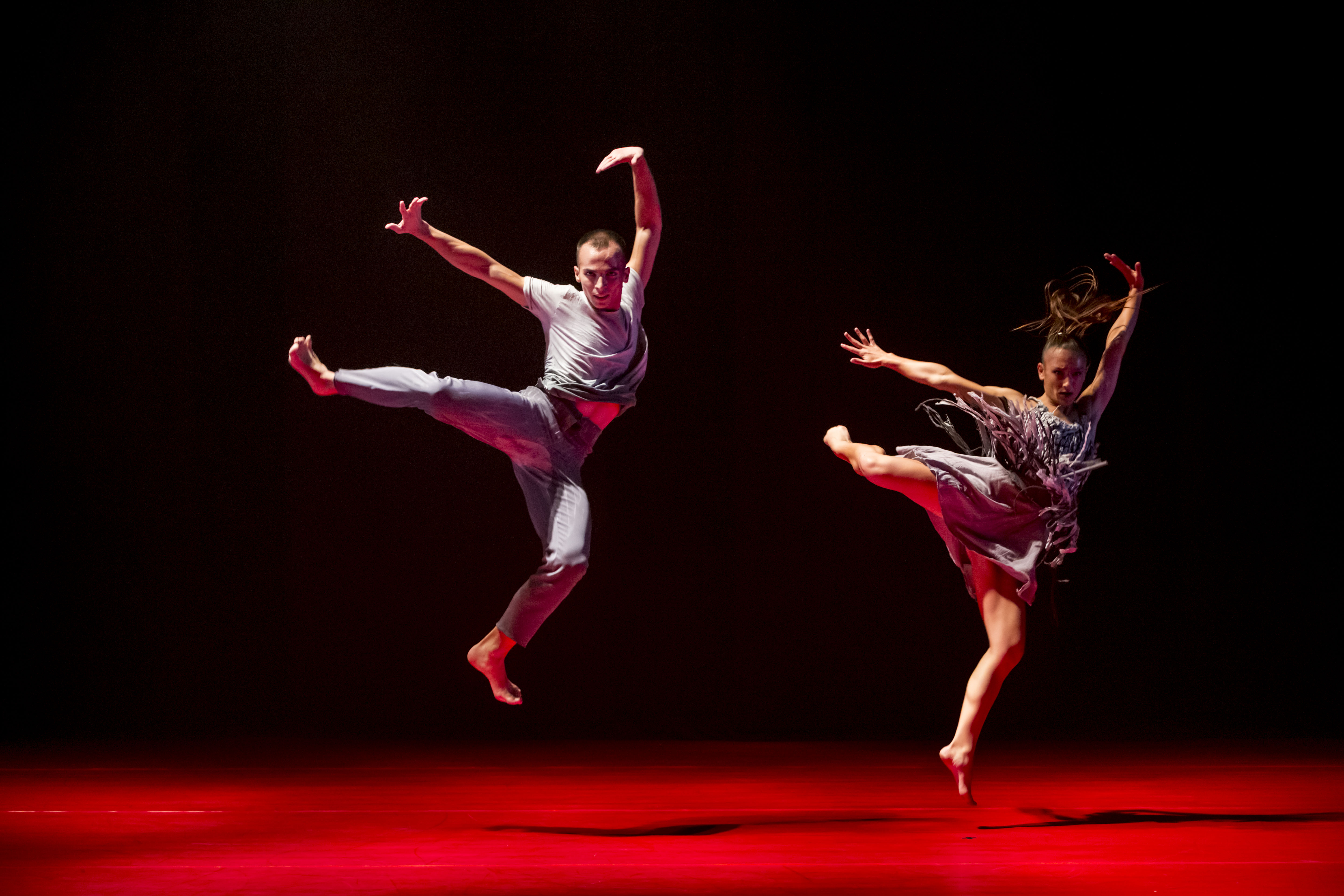 Это ощущается сразу, даже в том, как танцовщики работают с полом. Контакт короткий, прерывистый, вес не оседает, опора не проживается до конца. Нога ставится и тут же снимается, как будто поверхность ненадежна или опасна. Тело не доверяет пространству. И оно совсем не доверяет земле.