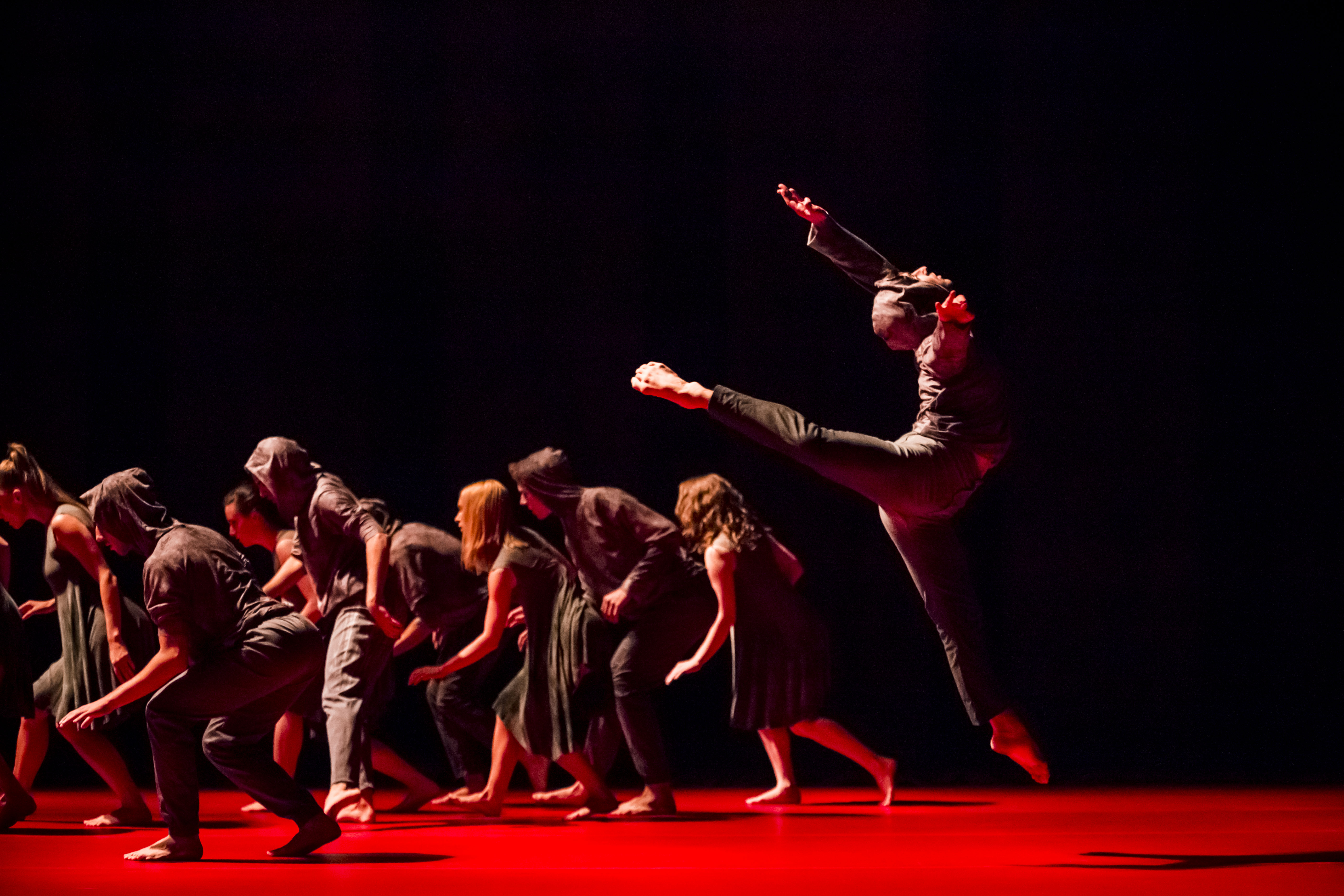 Хореография построена на постоянном колебании между индивидуальным и групповым телом. Соло не утверждает себя как «я», дуэты не ищут симметрии, сцена симультанна, танец полифоничен, весь ансамбль существует как изменчивая масса, где нет устойчивых форм, композиции собираются и распадаются, движение распространяется волной – через спины, плечи, колени.