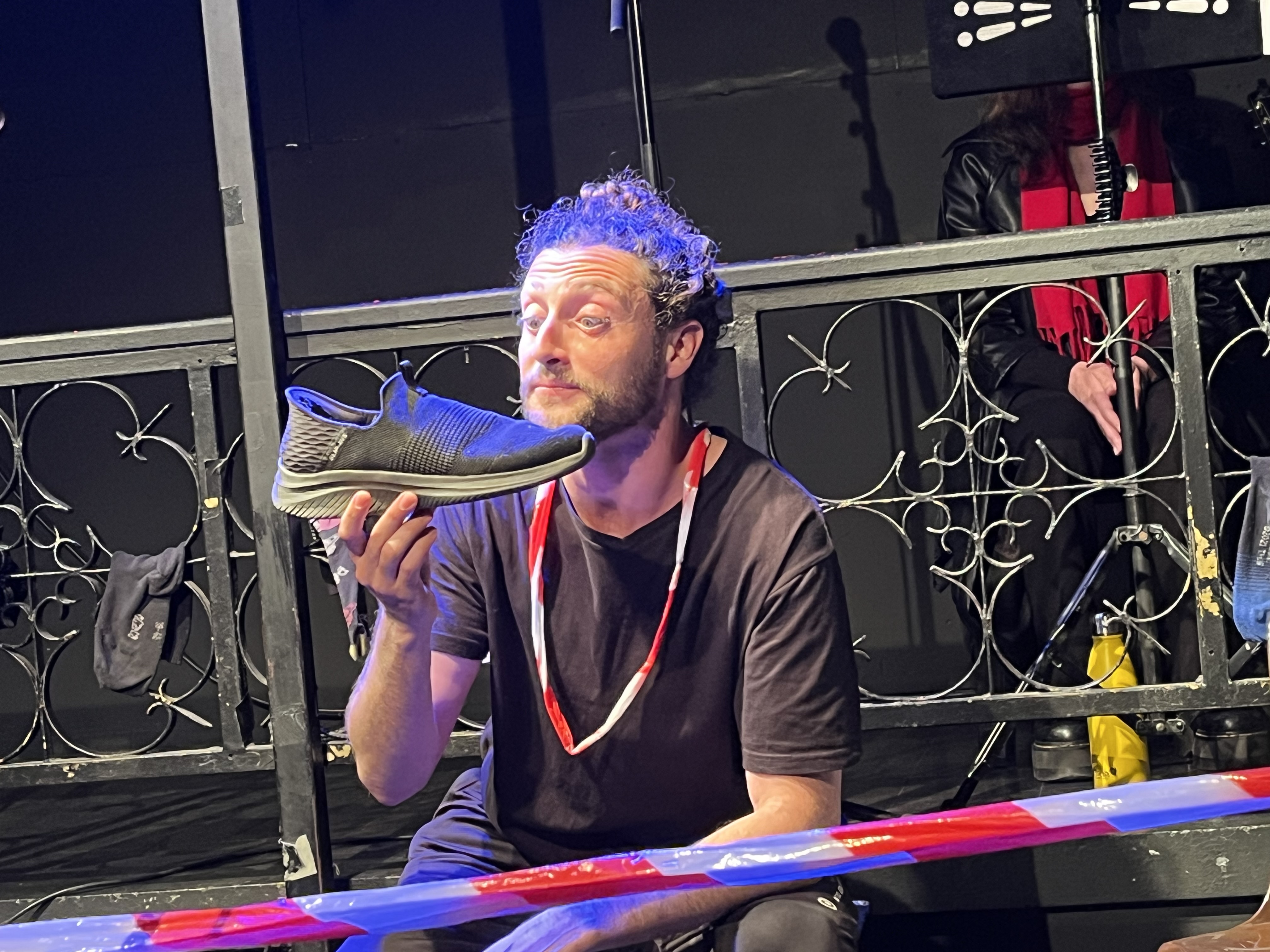 И еще есть стул, на котором валяется белая бумажка, на которой черным фломастером написано «Уильям Шекспир». И актер, усаживаясь на него, будет говорить от лица Шекспира, на английском и иврите с прононсом – толковать смысл быть и жить, и с кем быть, и ради кого жить. И сочинять монолог для заложника, и понимать, что Шейлок с его «кровавым долгом» больше не аргумент.