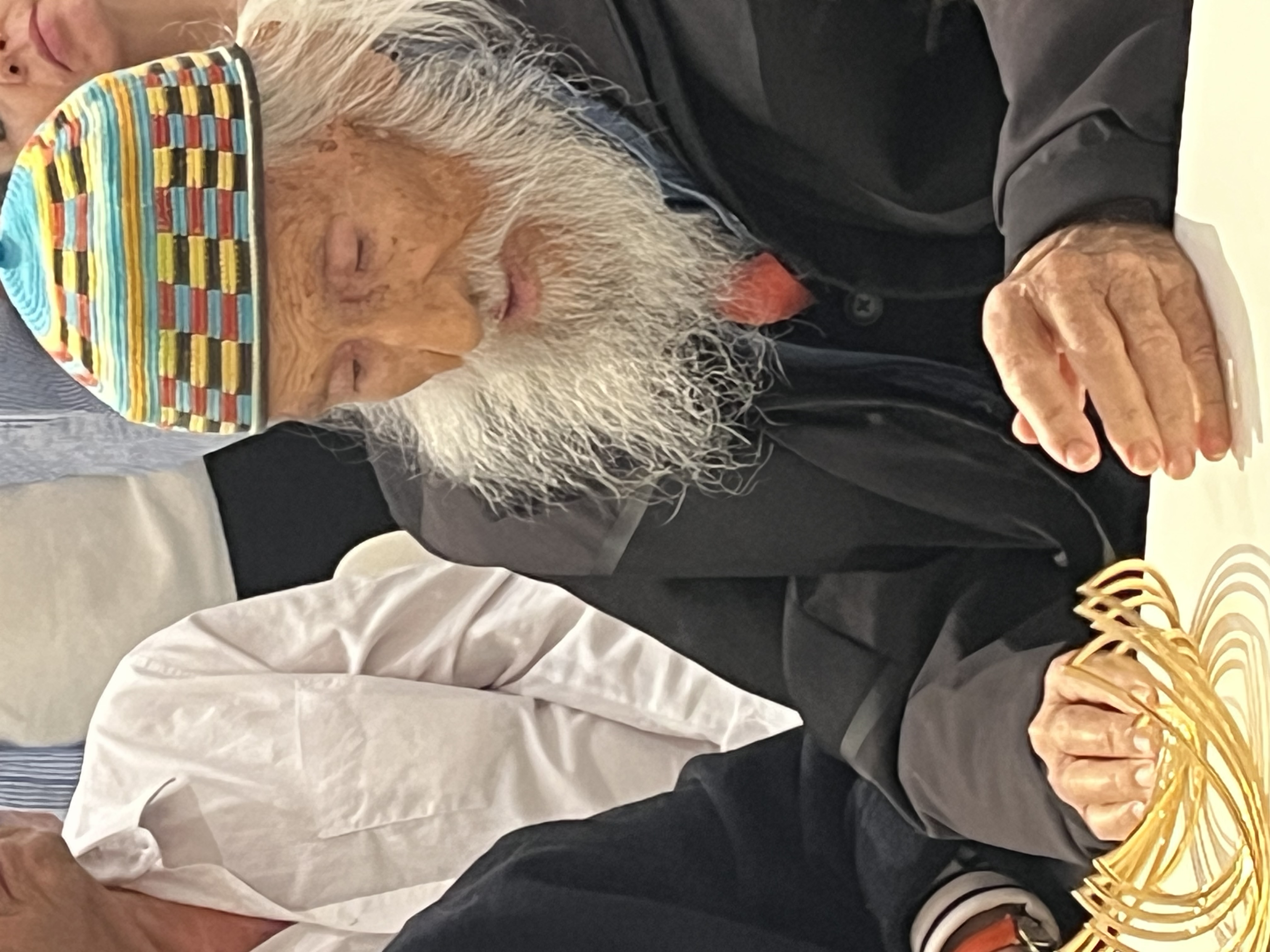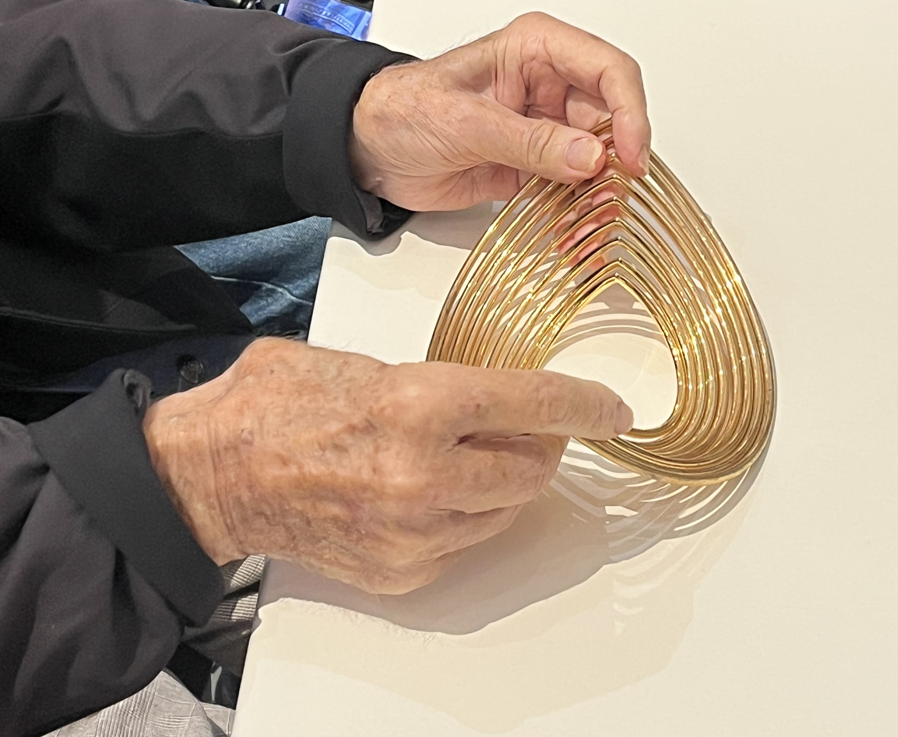 В Ришон ле-Цион пожаловал 97-летний Яаков Агам, гений кинетического искусства и оп-арта. Причиной визита маэстро, который давно уже проживает в Париже, стало вручение ему Премии Израиля (странно, что этого не случилось раньше). В музей имени себя, то бишь Yaakov Agam Museum, художник явился с женой в очаровательной розовой шляпке на французский манер – подумалось поначалу, что дочка, организаторы шепнули – спутница жизни, и филиппинской сиделкой, катящей инвалидную коляску. Говорит Агам тихо, почти шелестя, но всё это невероятно трогает. Внешность у него совершенно библейская, а руки достойны кисти Рембрандта. Этими самыми руками красивой лепки он продемонстрировал трансформацию одной из самых известных своих работ, «לב פועם» – «Бьющееся сердце».