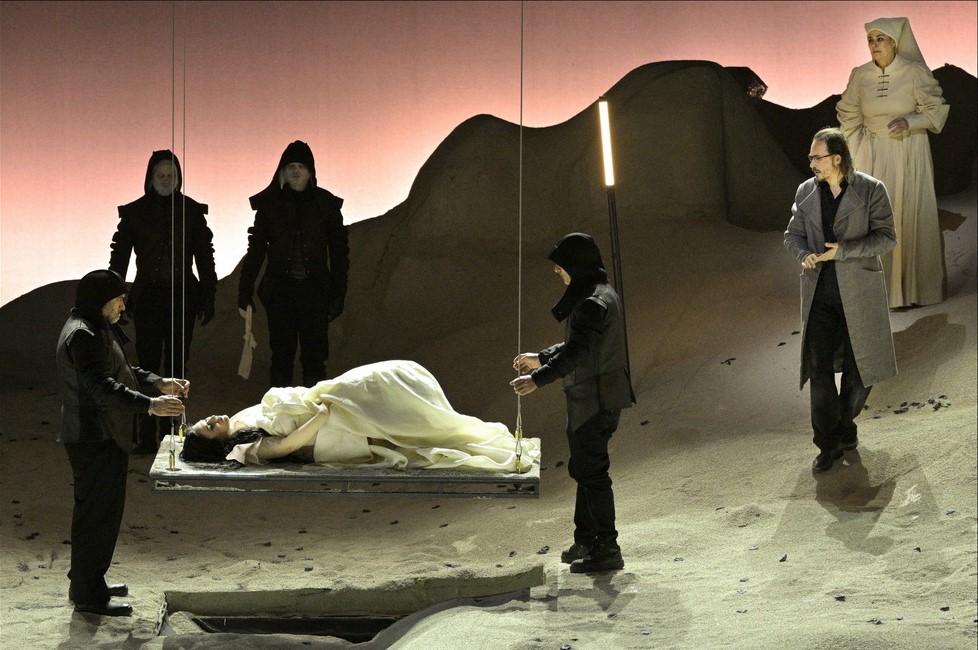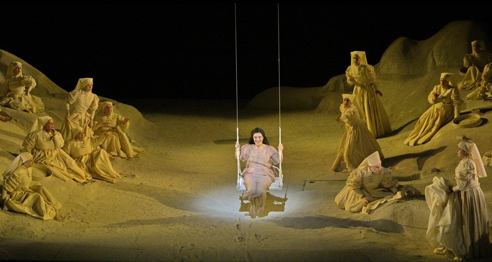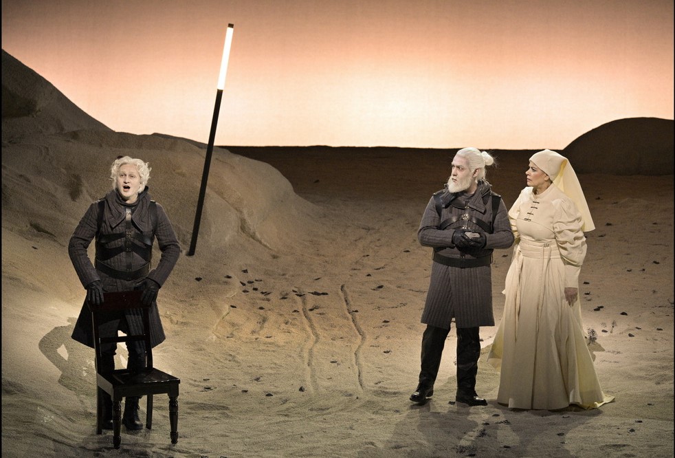 Сад у Чайковского – это метафора жизни, телесности, скрытого плодородия, мира, который цветет, даже когда его не видят. Пустыня же – пространство закона, испытания и аскезы, где желание не прорастает, а проверяется на прочность. Заменив сад пустыней, постановка окончательно смещает акценты: от органического – к нормативному, от любви – к испытанию, от света – к дисциплине. Это уже не сказка о прозрении, а притча о том, как знание отменяет рай.