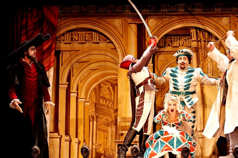 Отдельно следует сказать о костюмах – их сочинил известный фэшн-дизайнер, «немецкий Валентино» Гвидо Мария Кречмер, основатель модного лейбла Guido Maria Kretschmer Couture. Его модели охотно носят знаменитости мирового масштаба (пресса даже величает его «любимым дизайнером красных ковровых дорожек») – и на подиуме, и на сцене, и на киноэкране. Персонажей оперы Россини Кречмер одел в затейливые наряды, в которых смешались барокко, комедия дель арте и гламурная современная пестрота. Часть героев и вовсе отсылает к итальянской комедии масок: Розина щеголяет в костюме Коломбины, ее опекун Бартоло – в костюме Доктора, ну а Фигаро, разумеется, не кто иной как изворотливый и сметливый Бригелла. Впрочем, карнавальность заложена в самой основе этой классической оперы-буффа, где одни дурачат других, а порой и сами остаются в дураках.