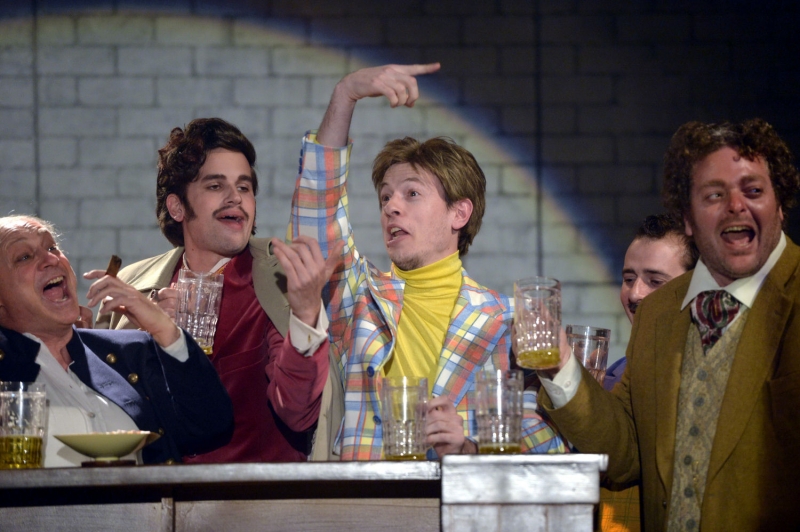 Уди Бен-Моше умеет шутить, умеет развлекать. Умеет руководить карнавалом. Жаль, что одно из самых главных его режиссерских качеств – умение заставить зал думать – в этом спектакле проявилось слабее. Зато сценография «Виндзорских насмешниц» (художник-постановщик Светлана Брегер) выглядит весьма оригинальной и стильной. Предметов на сцене совсем немного, но все они – барная стойка, кушетка, бельевая корзина, дверь, отделяющая сцену от большого мира, в котором живут и действуют виндзорцы, – используются точно и со смыслом. Так же хороши и костюмы: платья дам легко превращаются в изящные карнавальные наряды, все герои спектакля становятся эльфами и феями, которые несутся по лестнице сюжета, бросая в зал улыбки и остроты. Фантазия художника по костюмам Юдит Ахарон, как всегда, изящна и легка, она не боится авторитетов и классических клише. Граждане Виндзора одеты в разноцветные пиджаки, жилетки и брюки – как герои современных пьес. Пастор Эванс (его колоритно играет Арье Чернер) носит рыцарские латы и опирается на золоченую шпагу – герои Шекспира живут здесь вне времени и рассказывают нам смешные актуальные байки.