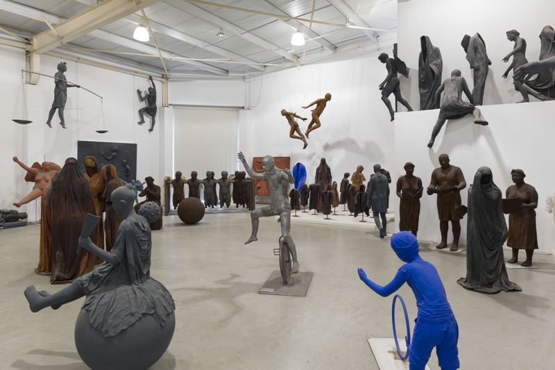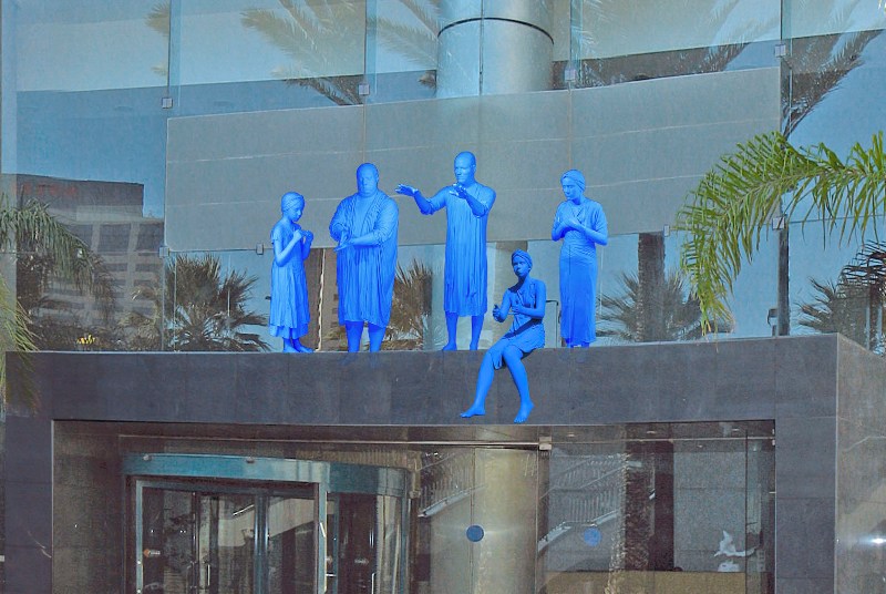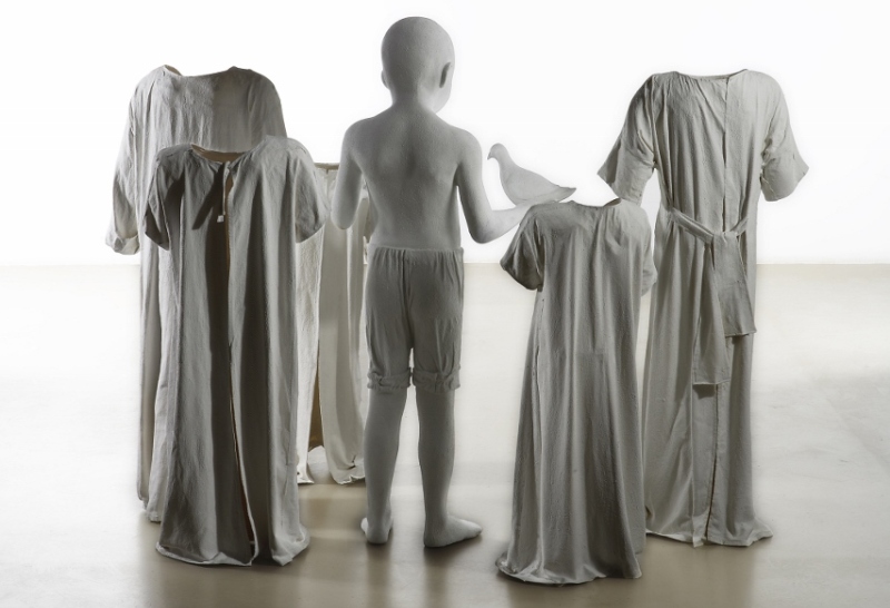 Скульптуры Офры Цимбалиста безупречным образом вписываются в архитектурную среду и взаимодействуют с ней. Ее синие человечки упорно карабкаются вверх по стенам зданий, сидят, свесив ножки, на плоских тель-авивских крышах, дирижируют свысока людской толпой, беззвучно что-то напевая. На выставке ее работ «Очищение» можно наблюдать ритуалы рождения и смерти, сотворения и разрушения, процессы почти идеального круговорота материи. Скульптуры мужчин и женщин, совершающих обряд «очищения», инсталляция, состоящая из трех костюмов и чемодана, групповой скульптурный портрет с голубем, одежда, в которой нет человека – все это (вкупе с литографиями и рисунками) будет размещено в ближайшие дни в помещении Art Market на тель-авивской улице ха-Тааруха, 3. А в рамках фестиваля «Эпос» в Тель-Авивском музее искусств будет демонстрироваться фильм Цимбалисты «Свадьба» – танец жизни и смерти восковых фигур в 12-минутном видео, сопровождаемом музыкой сына Офры, известного перкуссиониста и композитора Хена Цимбалиста в исполнении певицы Талии Гур Арье.
