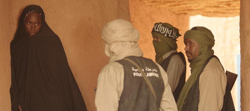 Гуманистический посыл наблюдается и в награжденной семью «Сезарами» ленте «Тимбукту» проживающего во Франции мавританского режиссера Абдеррахмана Сиссако – на режиссера он выучился, между прочим, в московском ВГИКе. Фильм сделан по законам жанра абсурда и живописует абсурд в высшей степени: к власти в Тимбукту приходят исламские фундаменталисты и превращают город в ад на земле – запрещают любые развлечения, любые попытки инакомыслия, накладывают табу на музыку и рэп и – страшное дело! – на право смеяться. Примечательно, что женщины, в отличие от мужчин, смиряться отказываются – даром что носят паранджу (а по велению власть предержащих – еще и носки с перчатками).