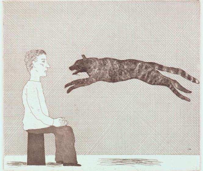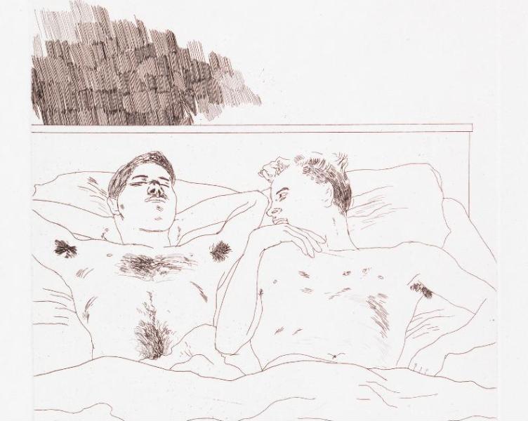 Однако выставка «Дэвид Хокни: слова и изображения» в Тель-Авивском музее искусств представляет его в другой, не менее важной ипостаси: как автора офортов и гравюр, которые он начал делать на заре творчества, в 1961-м, и занимался этим до 1977-го. И далеко не в Йоркшире, а в Лондоне и Нью-Йорке. Именно тогда Дэвид Хокни превратился из пикантной британской достопримечательности в звезду поп-арта. И именно в ту пору его карьеры он не на шутку увлекся литературой, которая служила исходным материалом для его графических работ. Тель-авивская экспозиция фокусируется на самых известных из них: «Похождениях повесы в Нью-Йорке», иллюстрациях к стихотворениям греческого поэта Константиноса Кавафиса и к сказкам братьев Гримм, а также на серии офортов «Голубая гитара», где Хокни визуализировал сборник стихов американского поэта Уоллеса Стивенса. По словам Хокни, «когда вы дополняете рисунок словами, это производит такой же эффект, как фигуры в фигуративной живописи. Люди сразу принимаются читать, а не просто смотреть – такова уж человеческая природа».