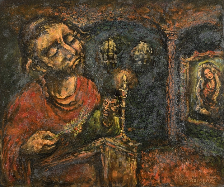 Выставка «Променад» представляет разные стили Йосла Бергнера – живопись предметную (предметы тут, надо признать, изрядно покорежены) и беспредметную, сюрреалистическую и символистскую, монохромную и многоцветную. В дополнение к выставке, 12 мая в Междисциплинарном центре в Герцлии состоится конференция, посвященная творчеству и философскому миру Йосла Бергнера – художника-интеллектуала, по-своему трактующего тему еврейской и израильской идентичности. Воздав должное Бергнеру, участники конференции обсудят проблемы еврейского искусства в более широком контексте, вспомнят о связях Бергнера-художника с израильскими писателями, драматургами и поэтами – в том числе Нисимом Алони, Йослом Бирштейном и Исраэлем Харом, – и проанализируют его влечение к творчеству Кафки. Среди участников конференции – профессор Рут Вайс (Гарвардский университет), профессор Дан Мирон (Колумбийский университет), профессор Моше Цукерман (Тель-Авивский университет), доктор Дорон Лурия (Тель-Авивский музей искусств). Под занавес конференции будет показан фильм Эрана Торбинера, снятого на основе интервью с Йослом Бергнером.