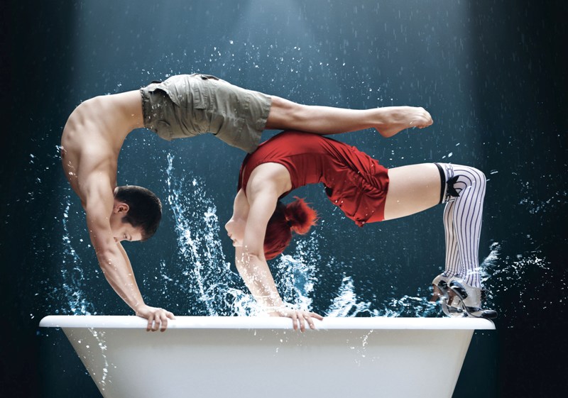 Его авторы, Маркус Пабст и Максимилиан Рамбек, – хореографы-фокусники, режиссеры-манипуляторы и сценографы-циркачи. Веселые постмодернисты, устраивающие диверсию на запретной территории, бросая вызов и Матсу Эку с его «Квартирой», и цирку Дю Солей, и оперным примадоннам, и Бетховену со Штраусом-сыном, и прочая. Купание-кувыркание в ванне – центральный пародийный прием придумщиков SOAP, который, как и снижающий юмор, является качеством их стиля. Здесь юмор высекается – точнее, выплескивается – из абсурда; здесь юноши с идеально выточенными телами и невероятной пластикой выполняют дразнящие клоунские батманы; выгибаются под немыслимыми углами; вращаются на руках на краю скользкой ванны, демонстрируя поистине безграничные возможности человеческого тела; озорничают, разбрызгивая воду в зрительный зал (публика из первых рядов усердно прикрывается прихваченными на случай дождя зонтиками). Украшают этот и без того красочный аттракцион психологические этюды с сюрреалистическими развязками и эротичные жаркие объятья, нанизанные на музыку.