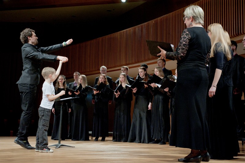 На фото: Эндрик Юксвярав с сыном Луукасом и хор «Коллегиум музикале» |