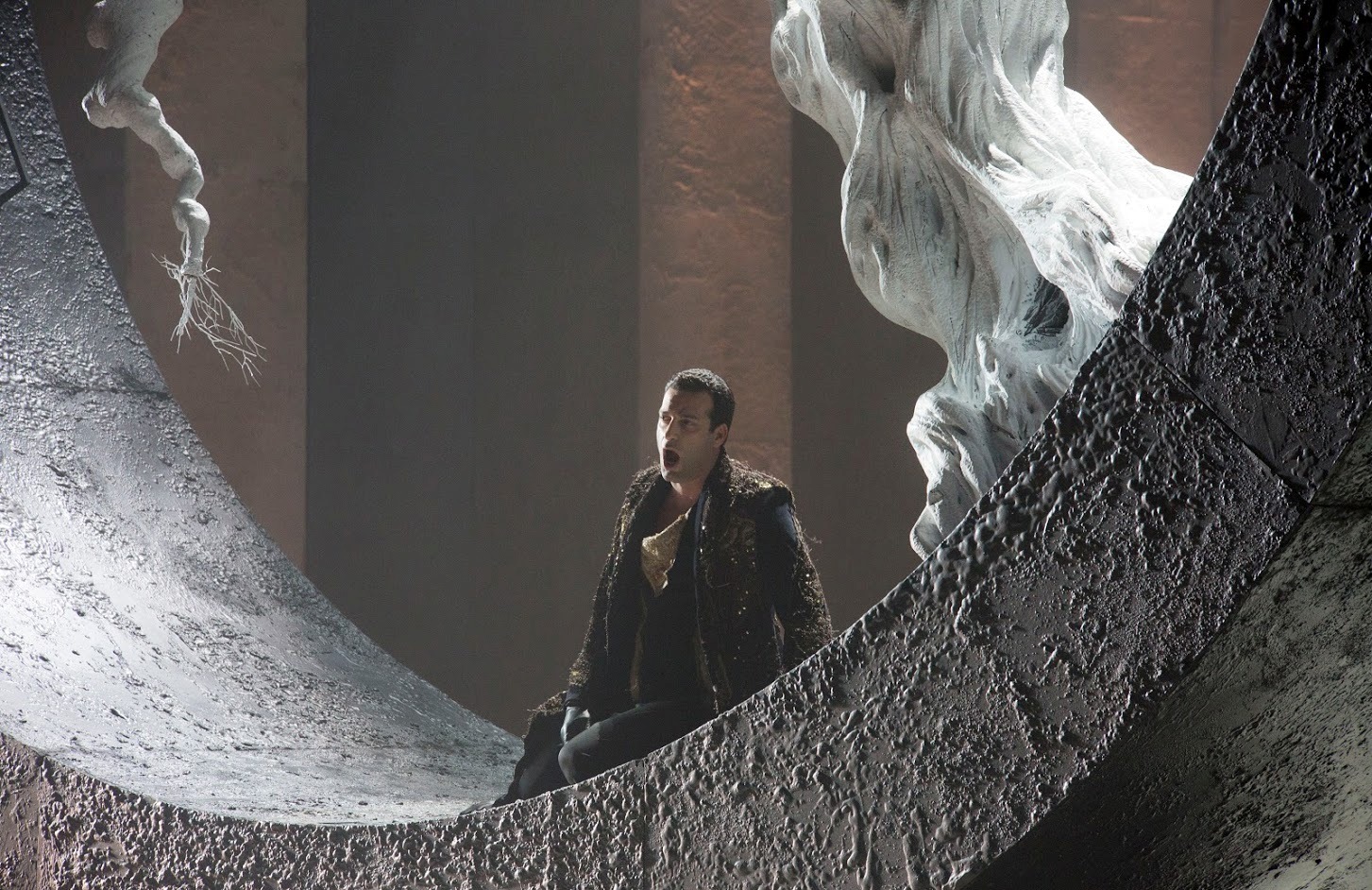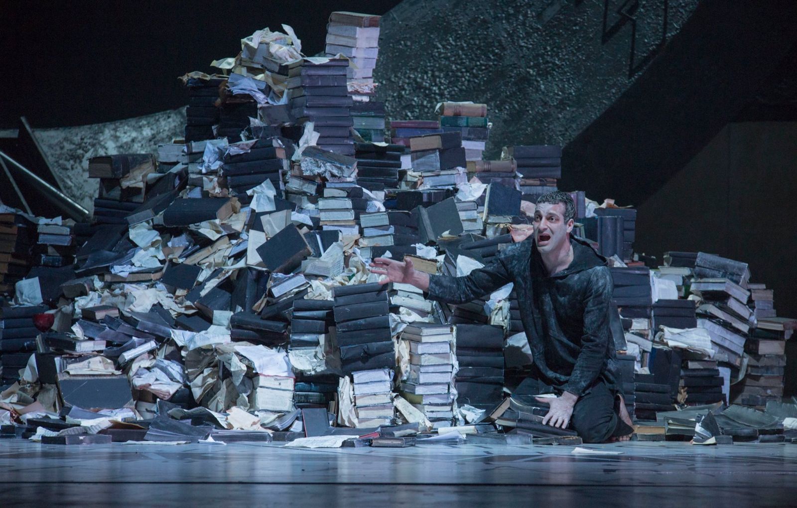 Режиссер, сценограф, дизайнер по костюмам, автор световой партитуры и хореограф Стефано Пода поступил как Гете: решил за всё в этом художественном творении ответить лично. Доктор Фауст (не гетевский старик, сладко мечтающий о философских откровениях и победе над безжалостным временем, а молодой безбожник, немного вертопрах, немного авантюрист, детище двух мастеровитых либреттистов – Жюля Барбье и Мишеля Карре) разочаровался в поисках научной истины. Ему стало противно рыться в книгах, и он вырвался из тихого, заваленного фолиантами кабинета. Будто решив: «будь, что будет». Двери распахнулись в горизонт. В том неведомом краю шла бесконечная война. И люди были бесчеловечными, жадными, падкими на зрелища и ядовитые сплетни. Жили в тех местах брат и сестра, Валентин и Маргарита. Ряженый клоун, киллер и немного шаман по имени Мефистофель (я пишу о втором составе, где выступил в этой партии болгарский бас Петар Найденов; если говорить о его голосе, то он не поражает ни тембром, ни техникой, на некоторые ноты намекает, другие не дотягивает, зато актерски демон вполне убедителен) считает всех вокруг жалкими людишками, «тварями дрожащими».