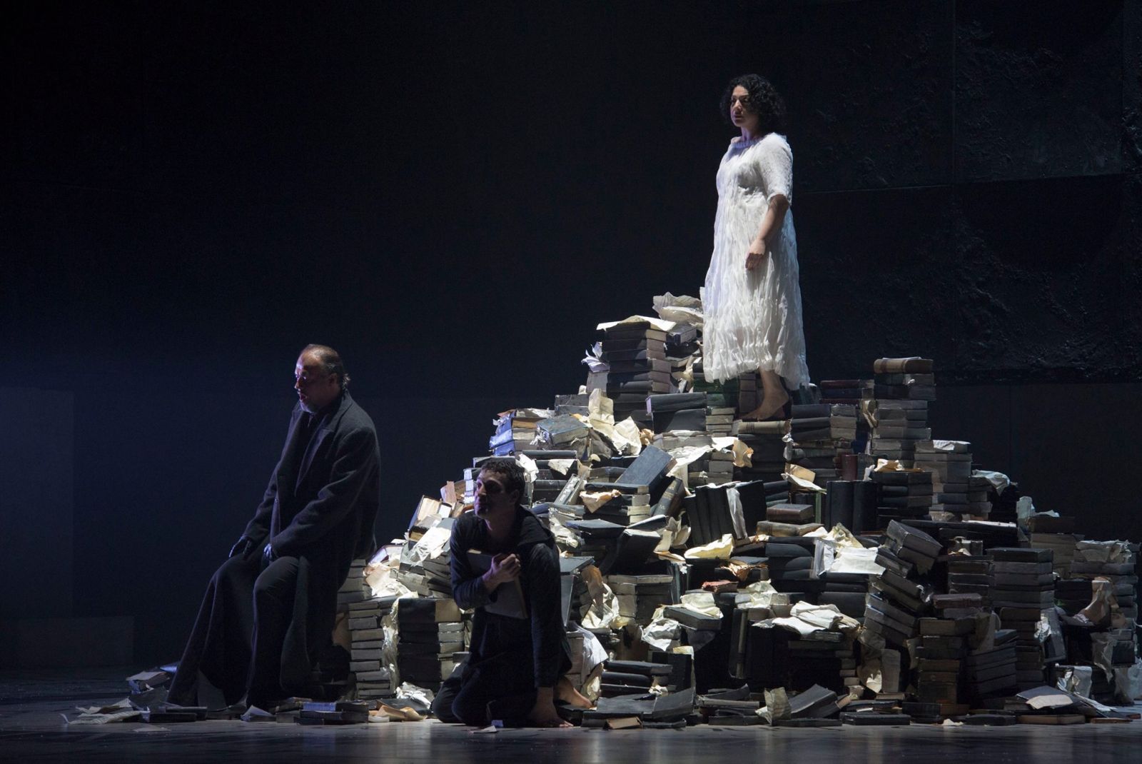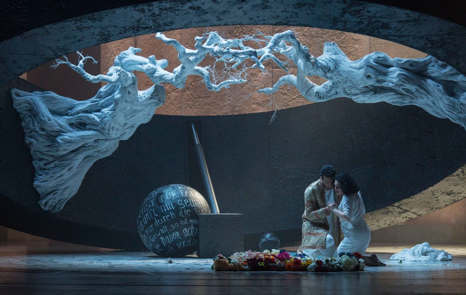 Фауст в этом составе – тенор из Косово Раме Лахай. Талантливый, колоритный, лентяй и плейбой. В общем, красивый молодой человек, с первых минут одержимый жаждой наслаждаться, пить полной мерой из кубка жизни. Сосредоточенная исследовательская работа не для него: слишком пышно зеленеет манящее его древо жизни. Маленькая Маргарита, сирота, потерявшая сестру, кажется ему воплощением восторгов, юной феей, прибежищем для одинокой и холодной души. Маргарита – инструментальное, задушевное сопрано грузинской дивы Тамар Ивери. Яркая и очень изысканная актерская линия. Особый трогательный мир, чистый, тихий, неискушенный. Маргарита тоже мечтает выйти из круга привычной жизни, свернуть с маршрута. Тянутся друг к другу роденовские деревья в круге жизни-смерти, руки-ветви летят над пропастью отчаяния. И главный дуэт Маргариты и Фауста – словно целая история. Мгновения счастья – это ведь все равно счастье. Потому так благоговейно вспоминают они эти слова и минуты потом, когда уже близок трагичный финал.